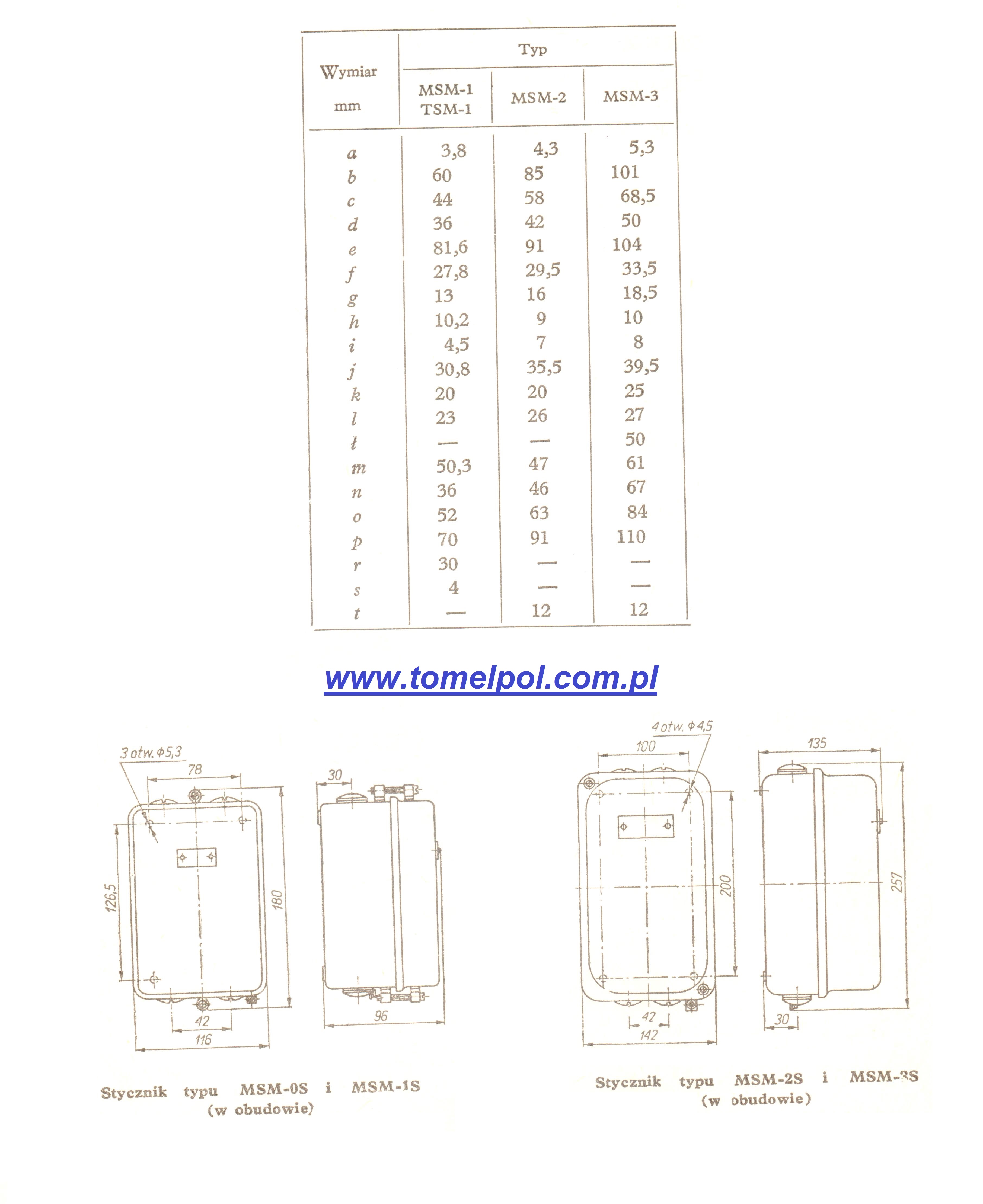 Styczniki TSM i rozruszniki ( zestawy) PSM mogą być umieszczone w obudowach, stanowiących wyposażenie przewidziane do kompletowania przez odbiorców potrzebnych zestawów.