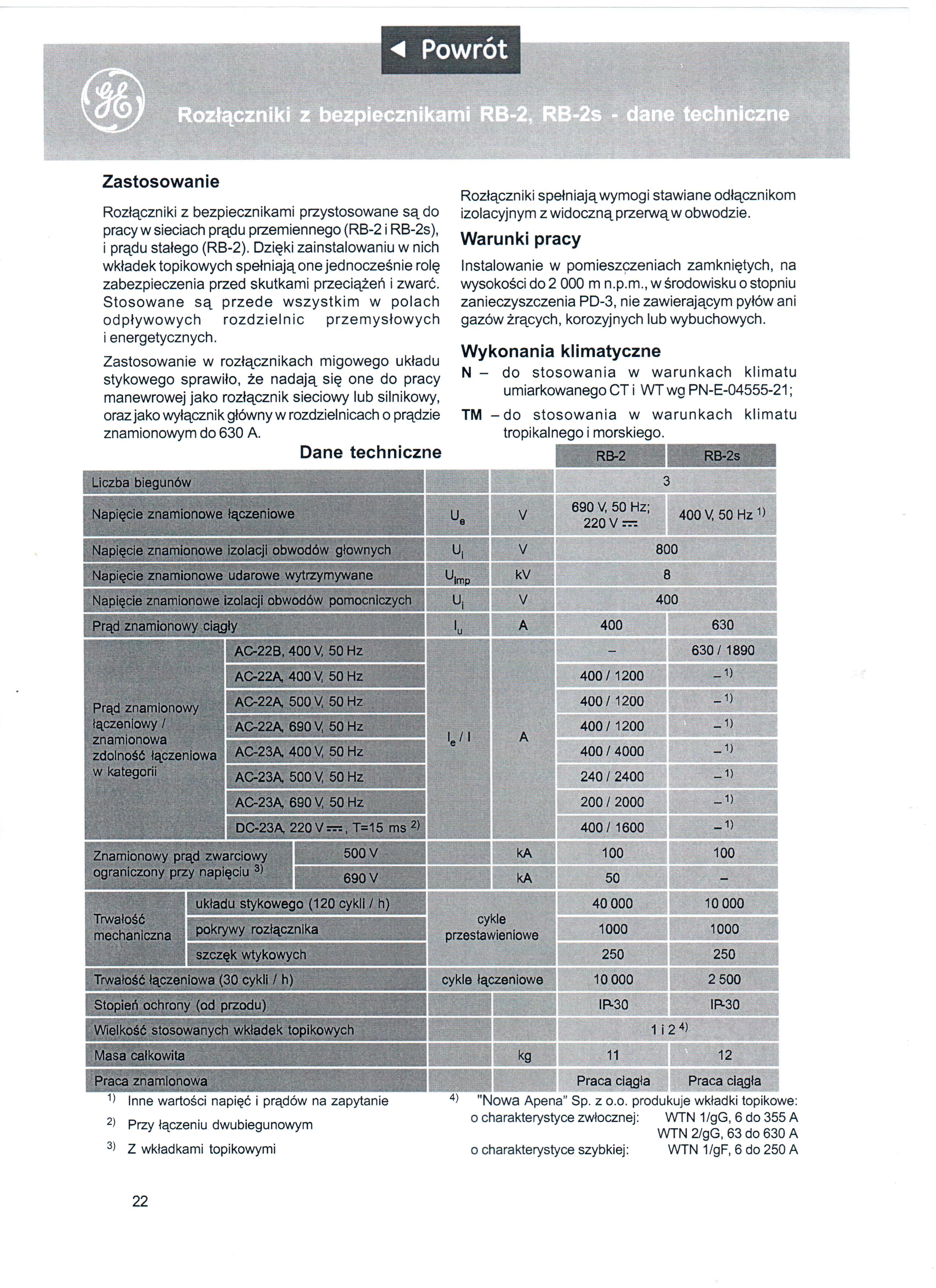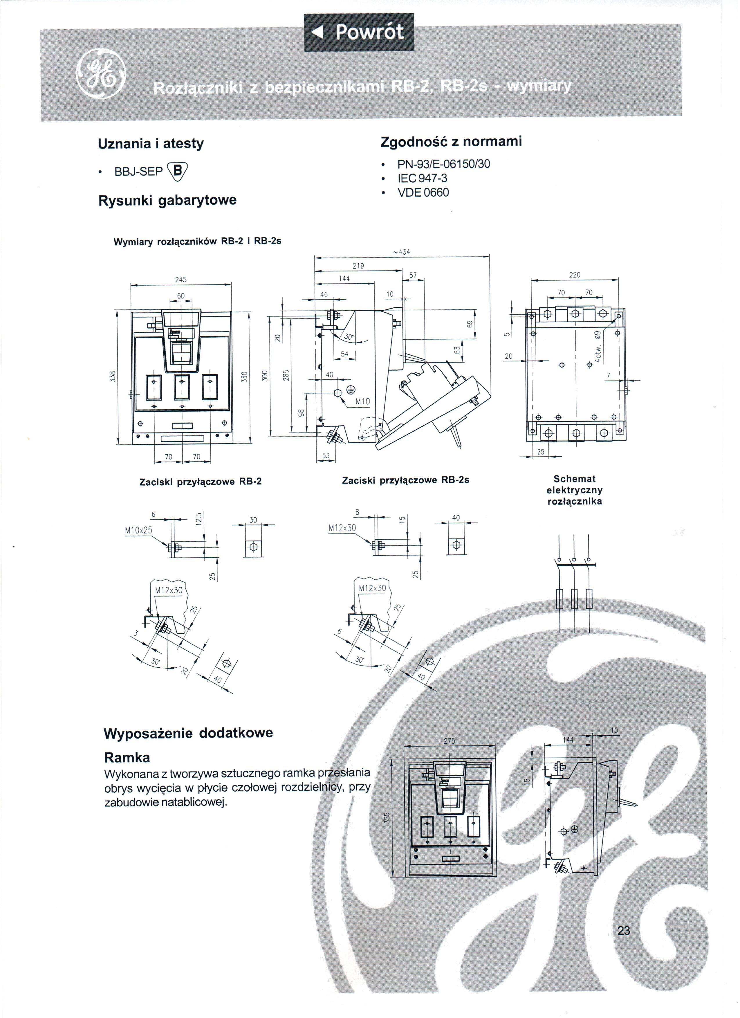 Rozłączniki RB-2 i RB-2s są aparatami dwuczłonowymi składającymi się z podstawy oraz odejmowalnej pokrywy. Cechą charakterystyczną odró¿niaj¹c¹ te rozłączniki od innych rozłączników bezpiecznikowych jest uk³ad stykowy. Układ ten sterowany jest ręcznym, migowym mechanizmem napędowym, którego dźwignia usytuowana jest w przedniej części pokrywy. Powstający podczas rozłączania prądu łuk gaszony jest w komorach ³ukowych. Załączanie i wyłączanie obwodu elektrycznego odbywa się poprzez manewrowanie dźwigni napędu, przy czym rozłącznik wyposażono w blokadę